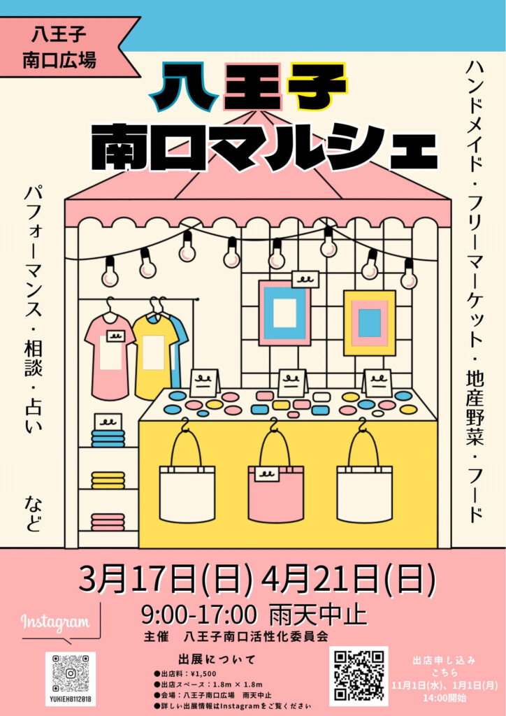 4/21(日)にJR八王子駅南口を降りてすぐのところで開催される「八王子南口マルシェ」に出店いたします。