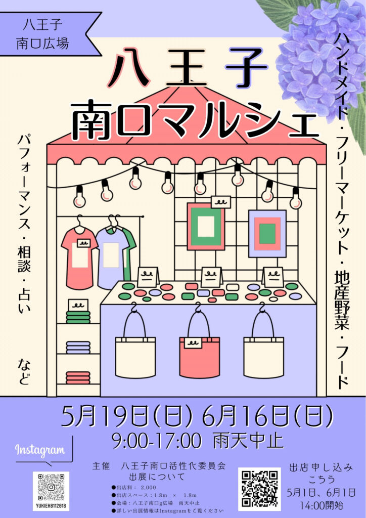 JR八王子駅南口降りてすぐ! 毎月第三日曜日に開催! ハンドメイド・フリーマーケット・体験 ワークショップ・軽食・色々相談ブース 占い・整体マッサージetc