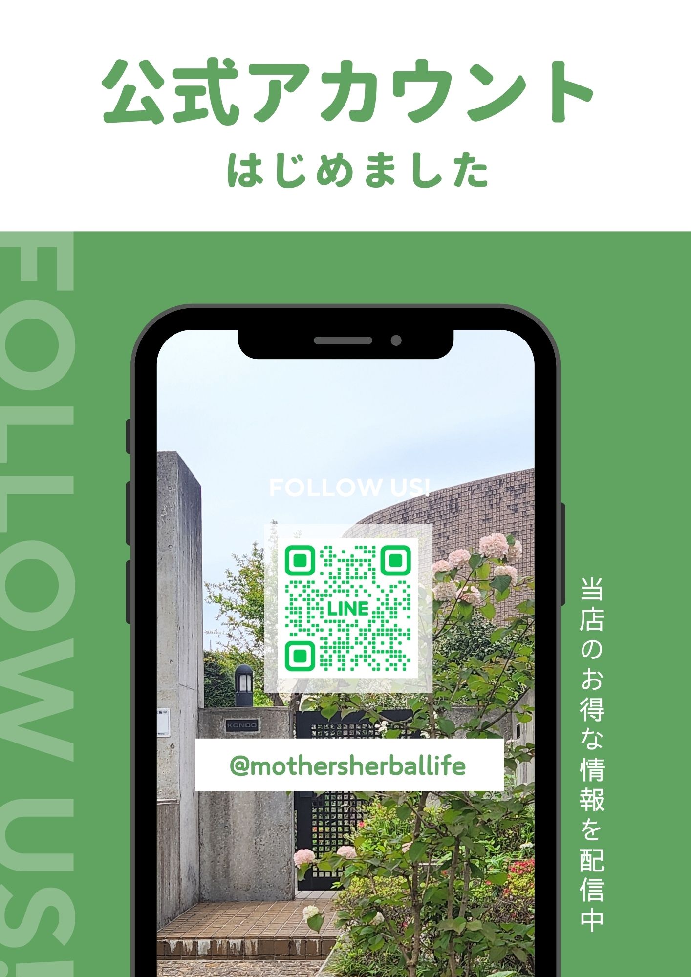 ワークショップにきてくださる皆様や、お買い物にきてくださる皆様にクーポンやタイムリーな情報を配信できるように、LINE公式アカウントをはじめました!