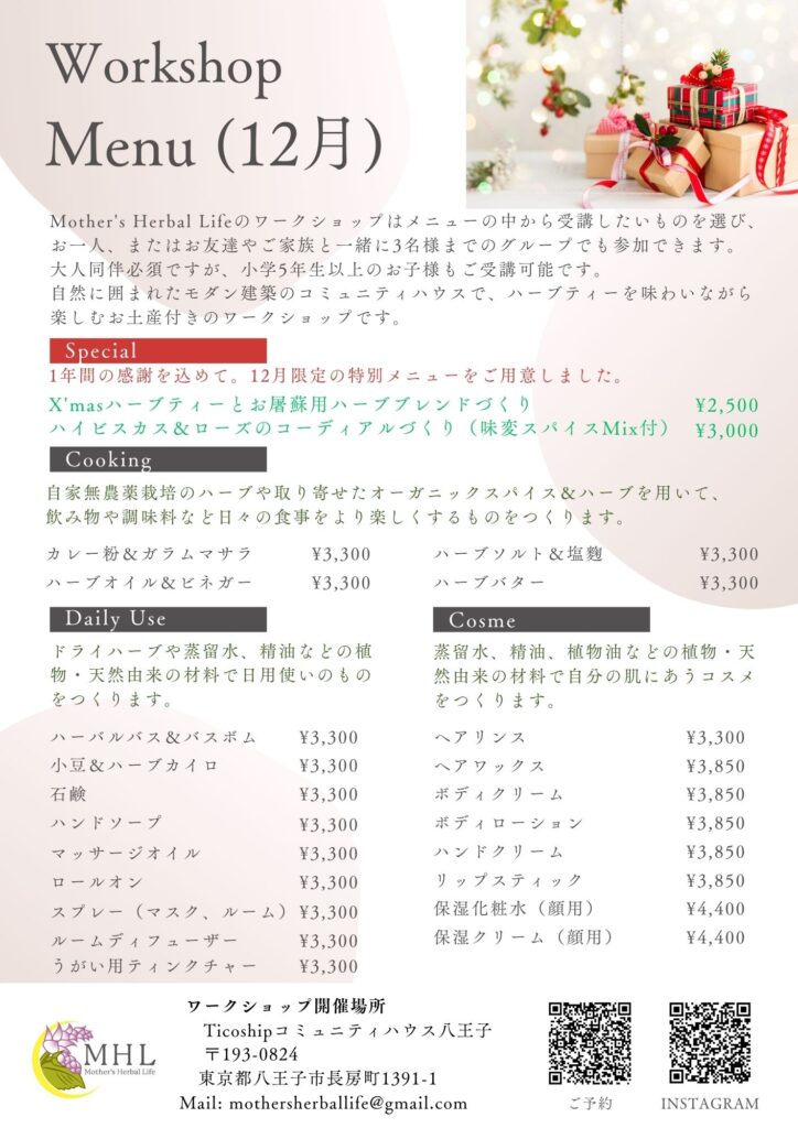 「X’masハーブティーとお屠蘇用ハーブブレンドづくり」