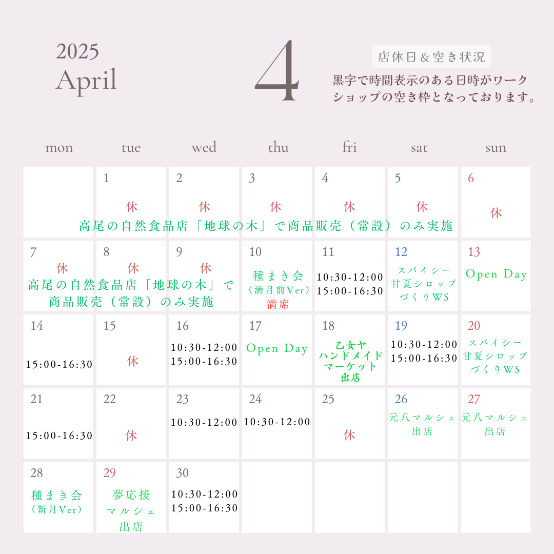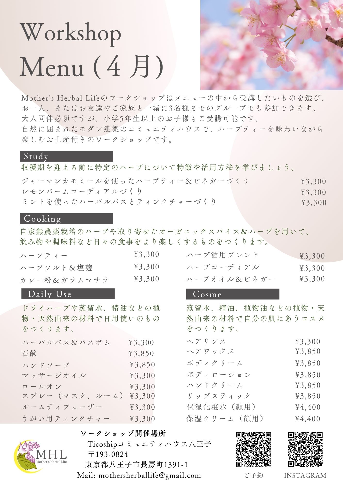 4月のワークショップメニュー公開&ご予約受付を開始しました😊